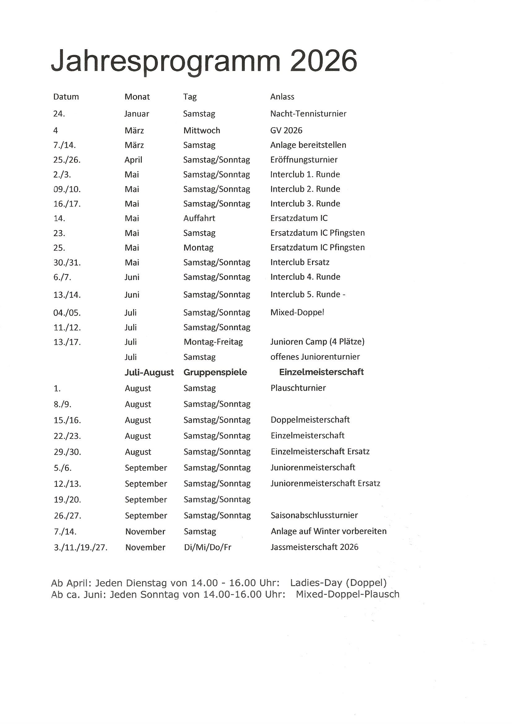 14./15.   Juni   Samstag/Sonntag   Interclub 4. Runde + Auf/Abstiegspiele